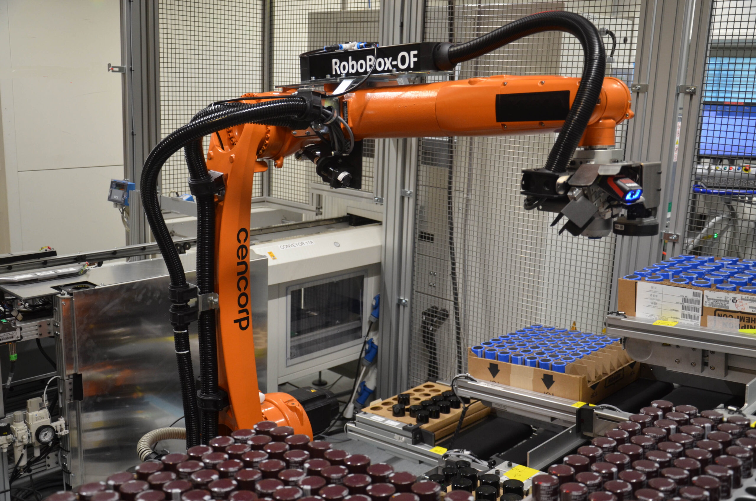 Our product range covers the full range of component sizes and packaging – and now also big cardboard boxes. Our vision-controlled picking process from low accuracy cardboard boxes will ensure smooth component and waste handling process. The placement process control is handled with on-line CAD coordinate importing allowing each PCB entering cell to be treated as unique product powered by Cencorp CIS-production control system. No product specific placement programs or program change overs are needed.
