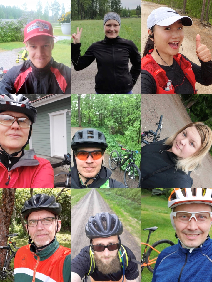 The summer of 2020 is destined to be unforgettable, because the COVID-19 epidemic has directly affected everyone’s work and life. In order to fight the epidemic, Cencorp Automation Oy responded to the government’s call to work remotely from home as much as possible, so that many colleagues have not seen each other for a long time. The company sports team initiated and organized by Minni and Mei has been very active. In June the Team organized a “remote” half-Marathon/Cycling event. All ten participants selected their own route and set off at the agreed time. After completing the half-marathon or cycling route everyone shared their achievement in the group chat. Mei, Minni, Aku-Pekka, Niko completed the half-marathon, and the others completed their respective cycling distances.