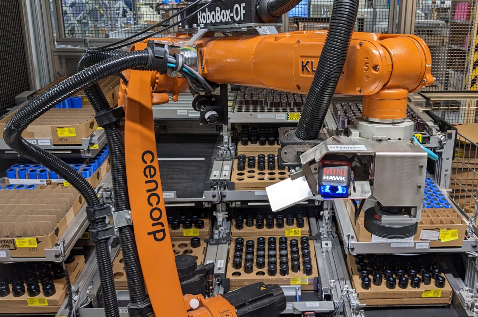 Placing large size capacitors has previously been a pure manual task causing ergonomic challenges for the operators. The Cencorp RoboBOX OF cells solves this problem. Utilizing a high precision 6-axis Robot arm from Kuka paired with the Cencorp odd-form SW and easy to use operator interface familiar from our traditional OF-cells we have created a flexible solution capable of placing not only large capacitors but also other oversized through-hole components.
